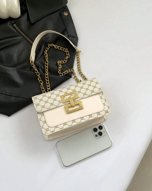 Sac à épaule pour femme avec motif floral vintage et bandoulière en chaîne,